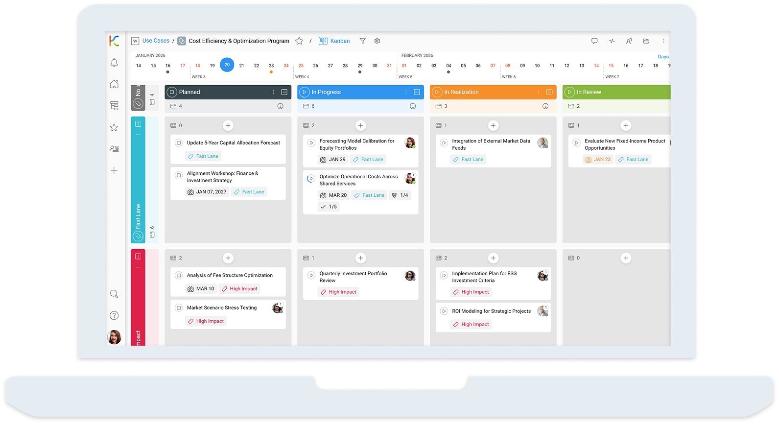 KanBo acts as a unified platform that powers strategic transformation in wealth management. From executive planning to tactical execution, it ensures agility, real-time visibility, and organization-wide alignment. Key functional areas include: