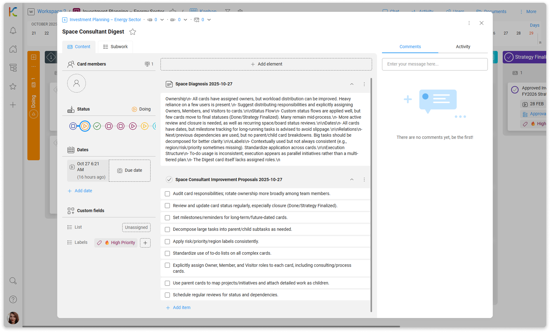 Energy companies face complex challenges in contract discussions due to their scale, global operations, regulatory landscapes, and long-term strategic agreements. These organizations must coordinate legal, commercial, and operational stakeholders while maintaining control over contract versions, approvals, and execution. KanBo brings structure, transparency, and agility to energy sector contract management—enhancing collaboration, risk mitigation, and alignment across dispersed teams and evolving regulatory frameworks.