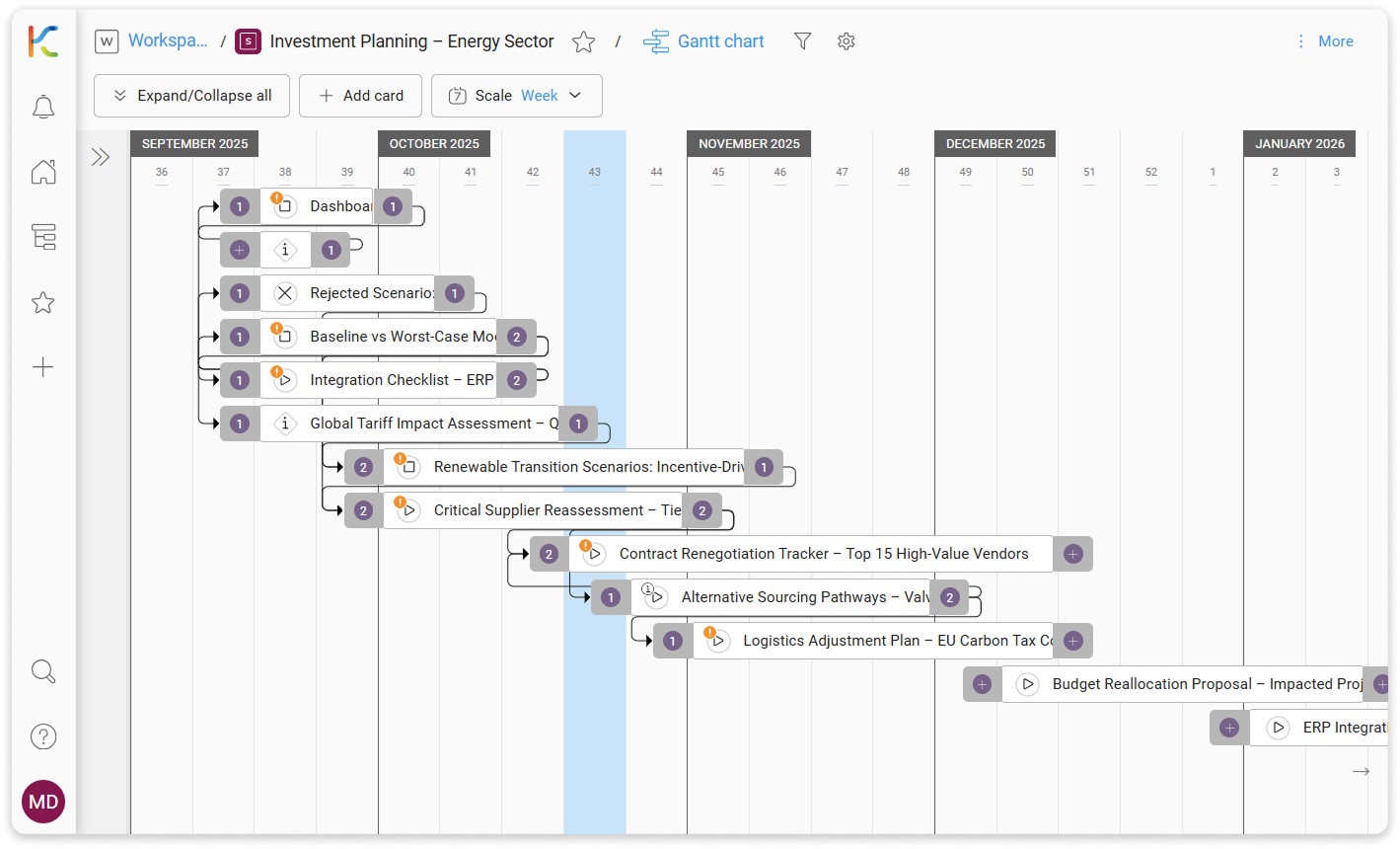 - KanBo Gantt Chart View: map multiple market scenarios such as tariff changes or regulatory shifts