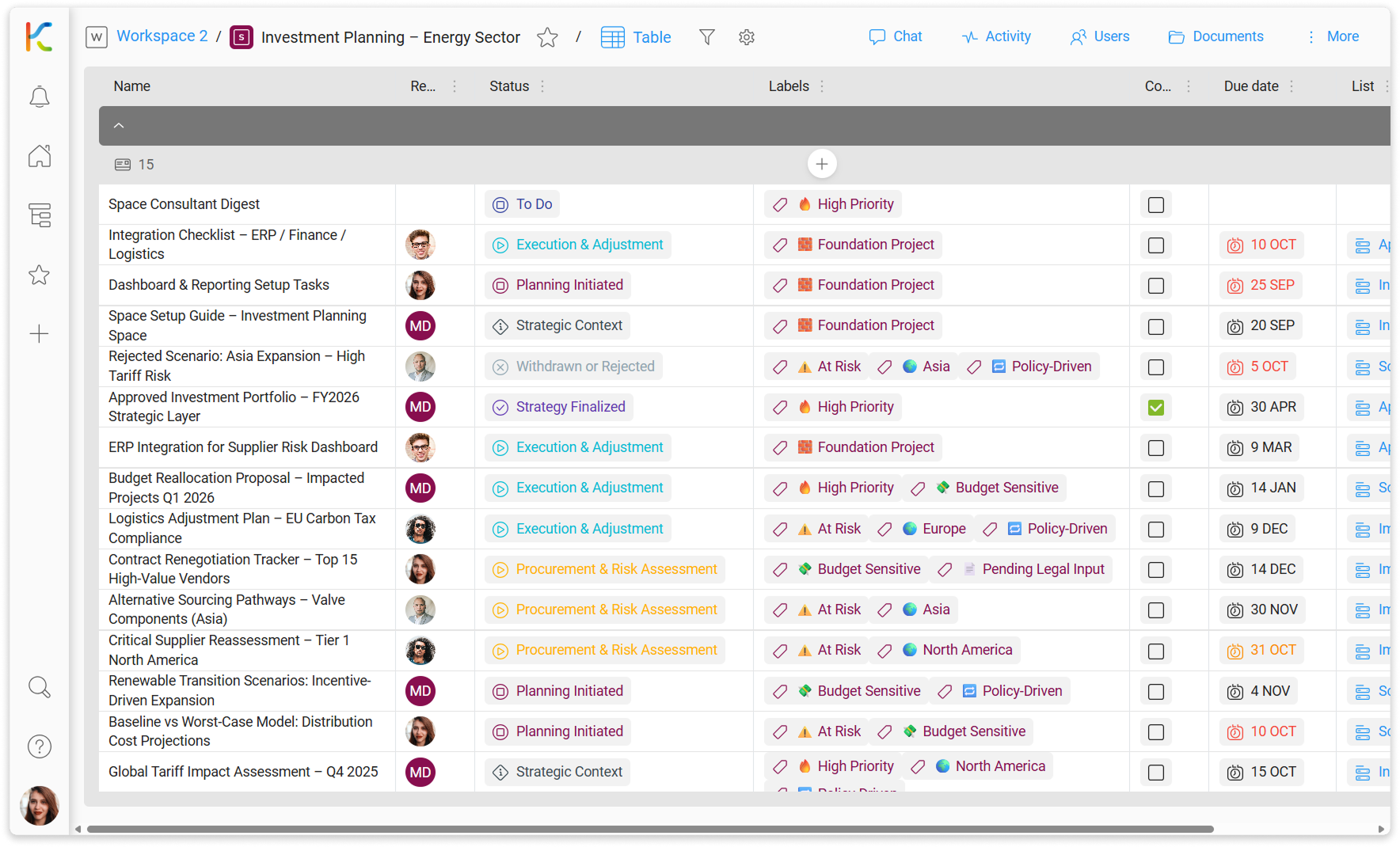 - Real-Time Collaboration Spaces: unify efforts between strategy, finance, procurement, and logistics teams
