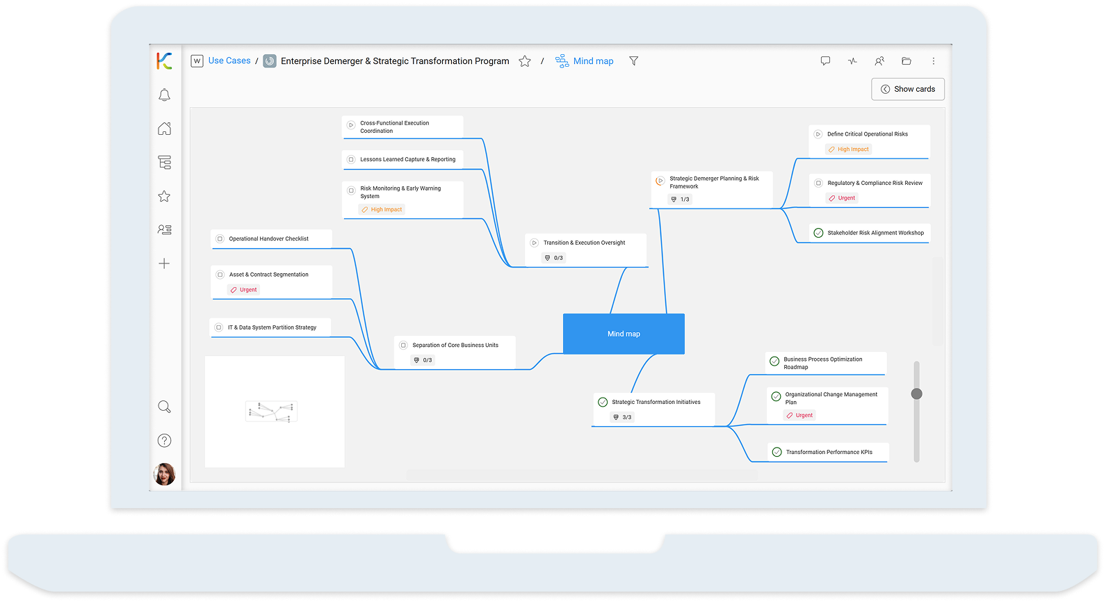 - Interlinked Cards: Connect compliance requirements directly to milestones.